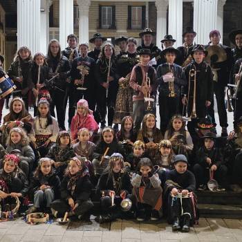 Pasacalles de Caldereros por las calles de Ordizia con los alumn@s de la Musika Eskola