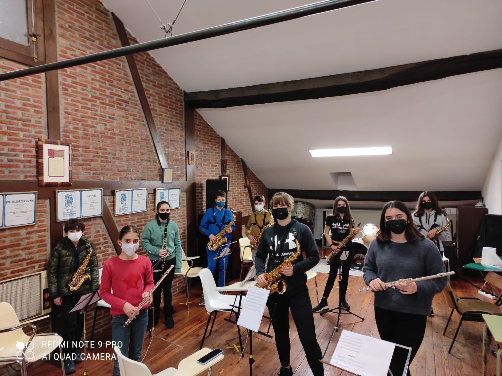 Alumnas/os de Ordiziako Musika Eskola celebrando jueves gordo.