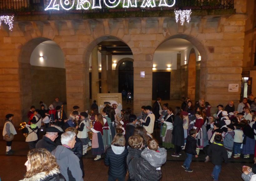 Musika Eskolako ikasleek gabonetako kalejira egiten Ordizian.