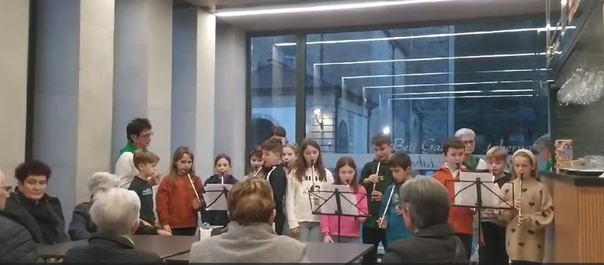 Zaldibiako Musika Eskolako ikasleak musika eskaintzen adinekoei